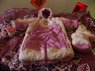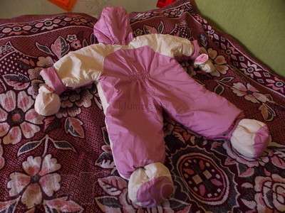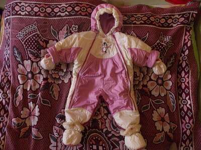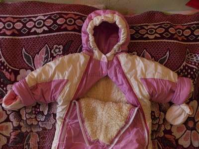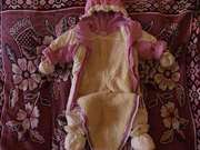 Для девочки, размер: 62,68,74,80,86 Тёплый комбинезон на холодную осень и на зиму. Комбинезон для ребёнка делается конвертиком,а более в старшем возрасте переделывается обычным с ручками и ножками,к нему входит рукавички на овчинке,топики на овчинке ( пристёгиваются) и сам комбинезон внутри на овчине + тоненький ситапон,на шее есть дополнительная вставка на двух кнопках для полной уверенности,что бы ребёнку не задувало,плотно прилегает. Мы его даже носили без шарфика, поддевали тёплый гольф под шею.Для холодной зимы очень тёплый,носили комбинезон мало. |