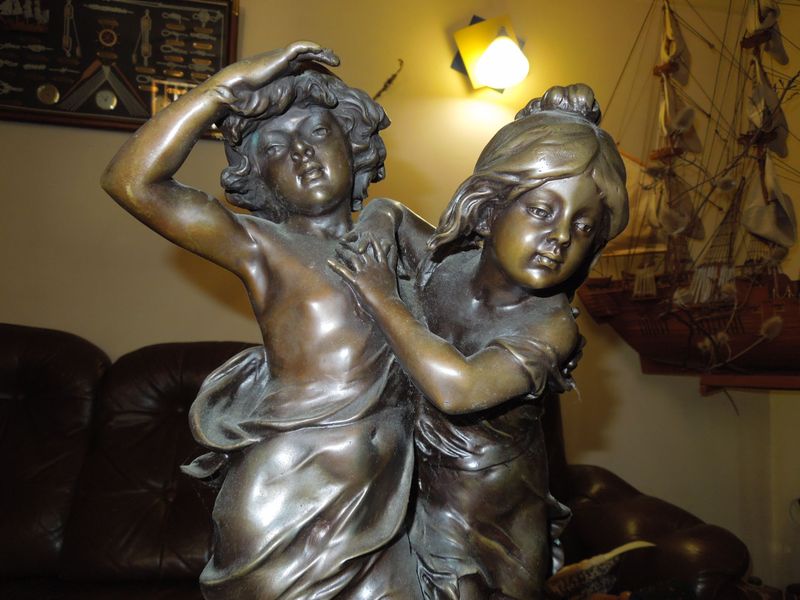 Бронзовая скульптура начала прошлого века, работы Moreau Auguste. Два персонажа делают её особенно яркой. Литая бронза. Состояние: отличное Высота 70 см. |