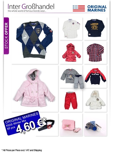 Оригинальная детская одежда из Италии. Вся одежда новая, упакована с тегами. Возраст от 3 месяцев до 16 лет. Минимальное количество 50 штук. Цена за единицу: 4,6 евр. + НДС Подробная информация: Номер тел.: +4971519442062 Skp: patricija_inter_grosshandel Майл: patricija@inter-grosshandel.de |
