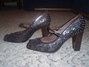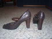 Продаю новые туфли. Натуральная кожа, 39 размер, каблук 10 см, цвет - коричневый, открытый носок, украшены лентой. Очень красивые. Удобная колодка. отправляю новой почтой |