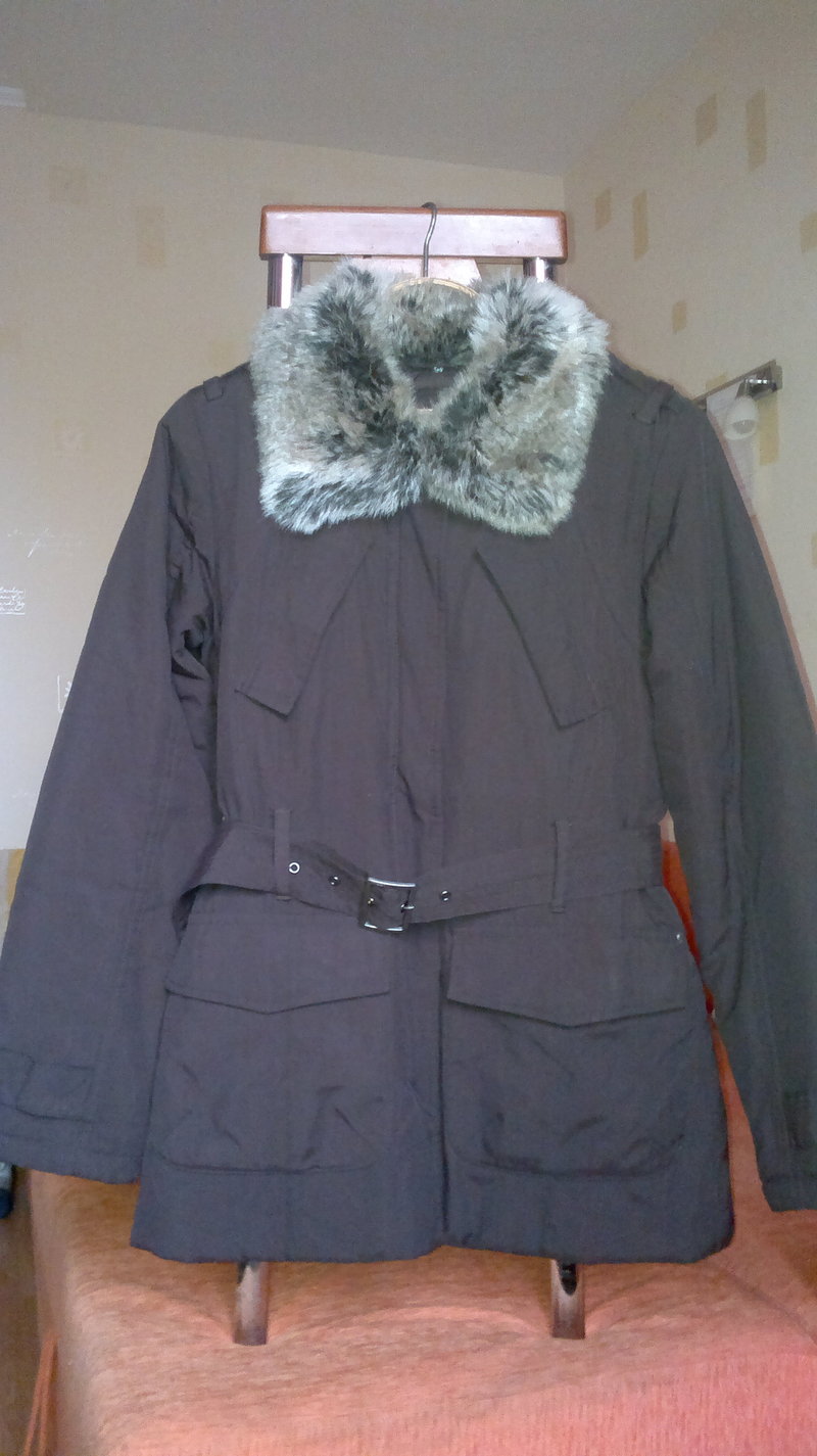 Куртка женс Оливер, 40размер, темно коричневая, осенне-зимняя, воротник пристежной искусственный мех, утеплитель синтапон, 4 кармана впереди и один внутренний на кнопках. Куртка почти новая, куплена в Гранд Галери значительно дороже. Одевала несколько раз, но оказалась велика даже, на пиджак. Куртка теплая, из плотной водоотталкивающей ткани, смотрится очень стильно. Пр-во Китай. Основные размеры: длина от плеча -75см, длина рукава от плеча -74см, ПОГруди -54см. |