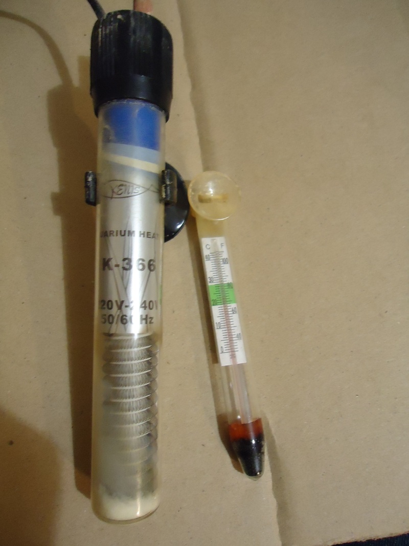Нагреватель Aquarium Heater K-366 + термометр. Б/у, фирма Kenis. 100 W, 220v-240v, 50/60 Hz. Нагрев от 17 до 35 градусов. Цена: 25. |
