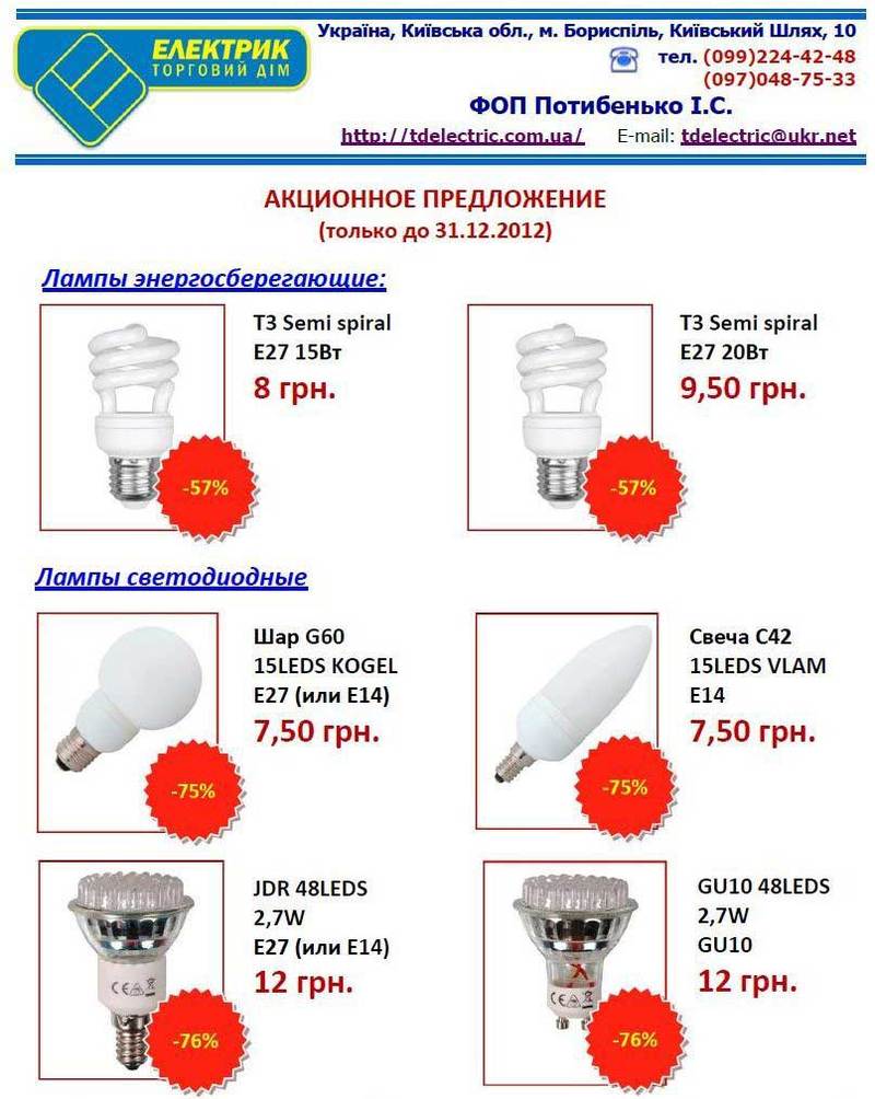 А также другие типы энергосберегающих и светодиодных ламп со скидкой до 76% на сайте Торгового Дома «ЭЛЕКТРИК» в разделе «Акционные товары».