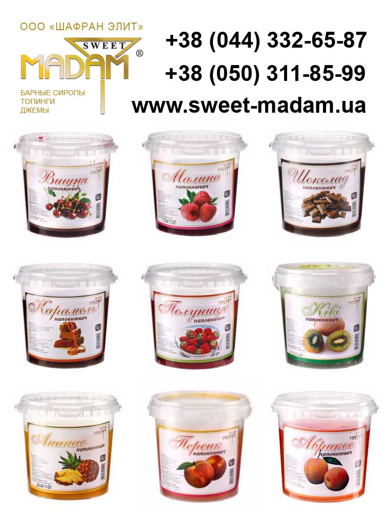 Фирма «Шафран Элит» производит продукцию под торговой маркой Sweet Madam, которая изготавливается из натурального высококачественного сырья. Основным направлением деятельности компании является производство и продажа оптом и в розницу коктейльных сиропов, барных сиропов, топпингов, топпинг-сиропов, наполнителей и джемов для кондитерского, молочного и хлебобулочного производства. Наших клиентов можно повстречать во всех регионах Украины и за её пределами.