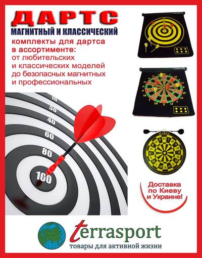 Дартс с острыми металическими и с магнитными дротиками. Отличная игра для офиса и дома! Хороший подарок для сотрудников и друзей. Для играющих в дартс не существует языковых и возрастных барьеров, соревноваться могут и взрослые, и дети.