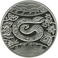 Коллекционная монета из серии "восточный календарь" Серебро 925. Номинал 5 грн Посвящена году Змеи, одному из животных восточного календаря Зеленый глаз змейки на реверсе монеты выполнен из оксида циркония. Станет отличным подарком к Новому Году) |