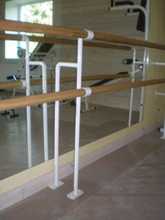Сегодня непременным атрибутом каждого гимнастического зала или танцевальной студии является хореографический снаряд. Это оборудование, представляющее собой геометрически правильную конструкцию из идеально подогнанных элементов, незаменимо для проведения тренировок и разучивания основных танцевальных па. Стандартный хореографический станок может быть двух типов: стационарным или мобильным (переносным). Вне зависимости от типа, каждый станок оснащен поручнями (жердями) из твердой древесины и креплениями (кронштейнами). Выезжаем на замеры и делаем монтаж. т.(095)222-32-99 |