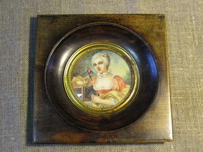 Миниатюра на кости «Девушка с птицей» - Картины, рисунки