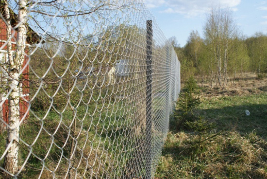 Забор из рабицы наиболее дешевый тип забора. Достоинства его в хорошей освещенности и обзоре прилегающей территории, длительном срок использования забора и нужно отметить, что такой забор почти не требует ухода |
