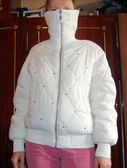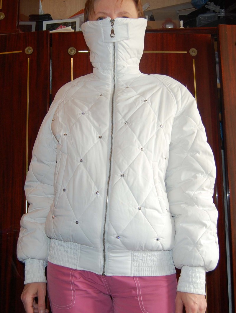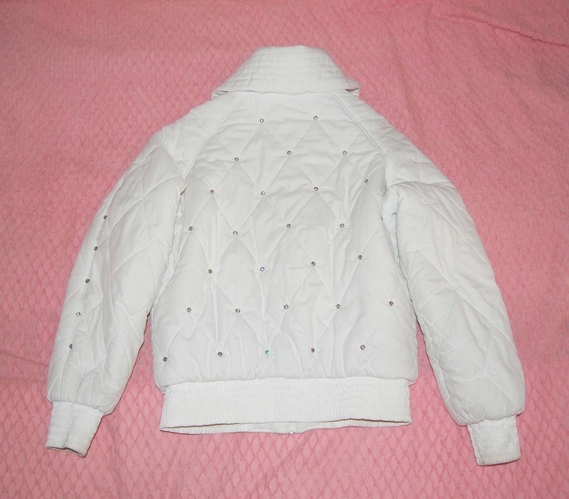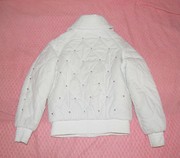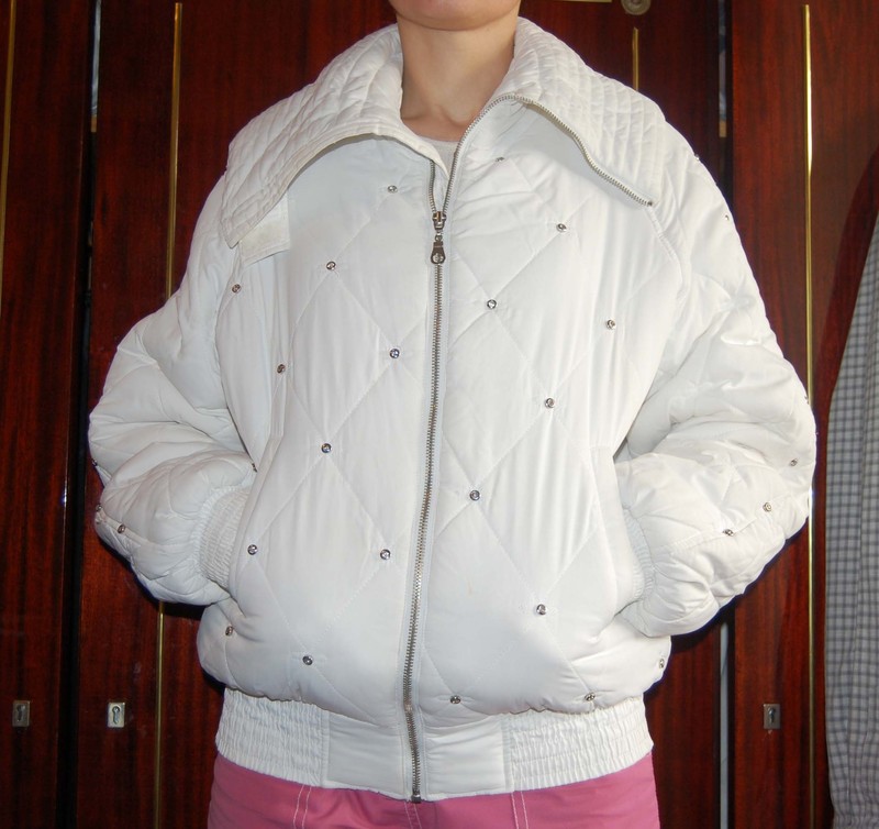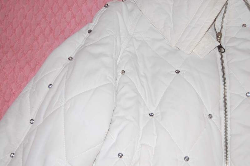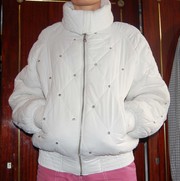 Теплая стеганая курточка фирмы BRAVO со стразами – размер L. Стеганая белая теплая курточка со стразами. Высокий воротник, внутренний потайной карман на молнии. |