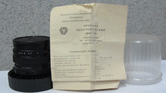 Мир-1В 2,8/37 — сменный широкоугольный шестилинзовый объектив. Оптика просветлена.