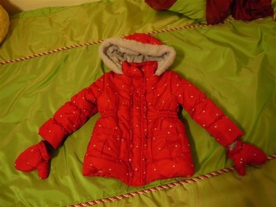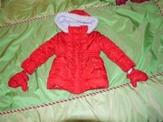 Для девочки, размер: 98 Детская зимняя куртка, красного цвета, теплая, на синтепоне, непромокаемый и ветронепродуваемый верх, с меховой подкладкой внутри и капюшоном, рукавички прикреплены липучками, при необходимости могут быть сняты. Идеальное состояние. Куплена в Лондоне, марка Junior J. Размер 98см (2-3 года). |
