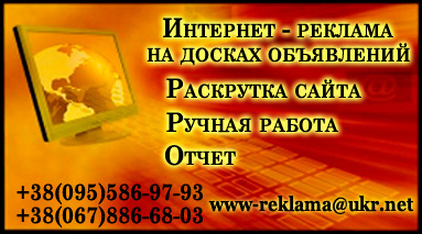 Размещение Ваших объявлений об услугах, товарах, предложениях и т.д. на бесплатных топовых досках Интернет-объявлений: - ТОП 230 - ТОП 125 - ТОП 70 - тематическая выборка досок согласно Вашей тематике. Только ручная работа ( объявления размещаются в нужном разделе без спама ). Ссылка на сайт. Добавление фотографий или тематической картинки. Сроки выполнения заказа: 1-2 дня. Индивидуальный подход к каждому клиенту. Сотрудничество только с серьезными клиентами. Предложение действительно для всех городов Украины. +38(095)586-97-93, +38(067)886-68-03 |
