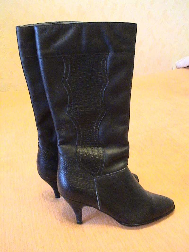Продам новые демисезонные женские сапоги (советская натуральная кожа). Производство – Киевская экспериментальная фабрика. Размер 39. Цвет чёрный. Каблук – 8 см. Высота голенища – 31 см. Подкладка – мягкий трикотаж. 400 грн. Тел. 063 740 70 25 |
