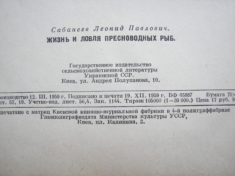 "Жизнь и ловля пресноводных рыб" Л.П.Сабанеев - Научная и специальная литература