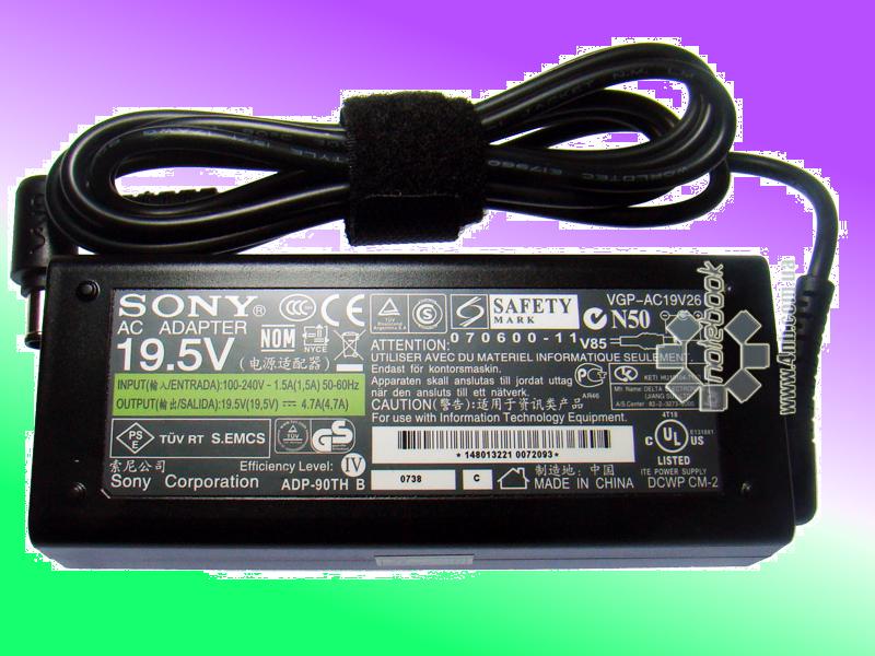 Блок питания для ноутбуков SONY 19.5V 4.7A, разъем 6.5/4.5mm с центр. пином Slim-корпус (оригинальный).
