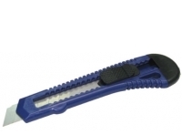 Пластмассовый корпус. Кнопки выдвижения и фиксации лезвия. Лезвие сменное, сегментированное, ширина 18мм. Предназначен для резки бумаги и картона при проведении строительных работ. |