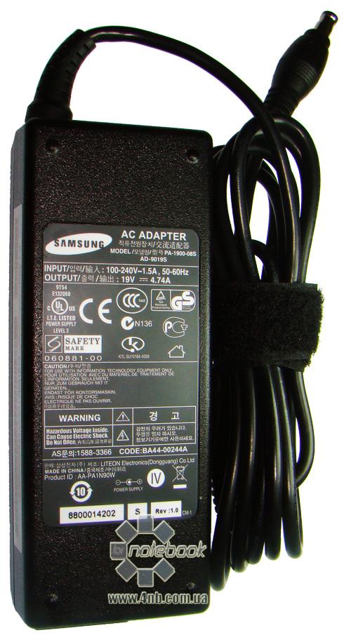 Блок питания для ноутбуков Samsung 19V 4.74A, разъем 5.5/3.0mm с центр. пином (оригинальный).