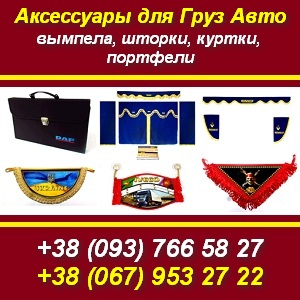 Купить, пошить, заказать аксессуары для грузовых автомобилей. Компания ГЕМБА предлагает: Портфели с логотипами для документов. Шторки, вымпела. Шнурки для ключей. Металлические замки на крышку бака. Куртки с логотипами моделей. Чехлы на сидения. Ковры резиновые в ассортименте. DAF, MAN, Mercedes, Scania, Volvo, Renault, Iveco, Volkswagen, МАЗ, Камаз, Богдан, Газель, груз авто USA. Отправка в страны СНГ. Вероника, Руслан +38(093)7665827 +38(067)9532722 Киев, пр-т Бажана, 26 |