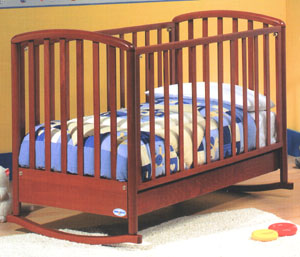 Производство Италии, натуральное дерево, цвет черешня, с ящиком для белья, подматрасник ламельный, два положения по высоте, бок опускающийся, колеса с фиксаторами, есть качалка |