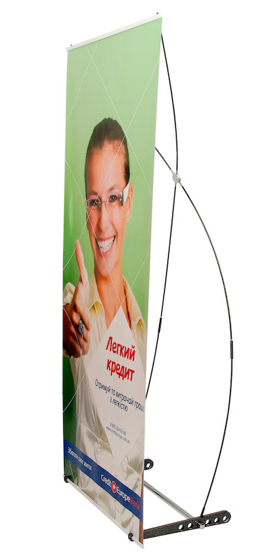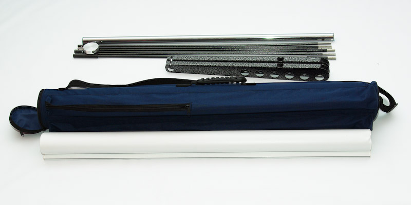 Утяжеленное основание и натяжка баннера с помощью пружинных прутов обеспечивают устойчивость «Паруса». Полотно размером 90х212 см крепится в алюминиевые планки для равномерного натяжения полотна. Баннерный стенд легко собирается без применения каких-либо инструментов. В собранном виде Парус легко переносится. "Парус" -надежный полностью металлический мобильный стенд. Вес 4,5кг |