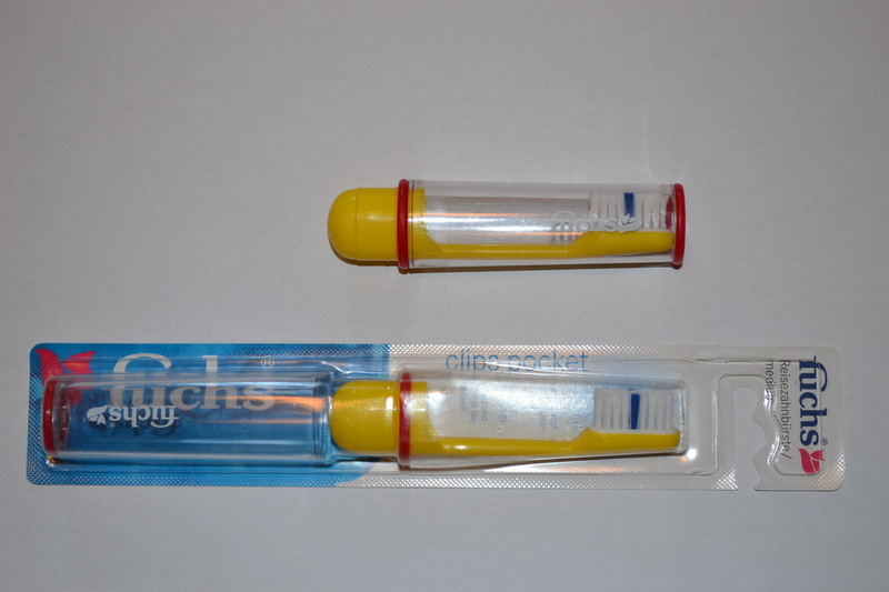 5. Дорожная зубная щетка fuchs Clips Pocket medium cредней степени жесткости с дорожным футляром.