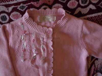 Машинная вязка с узором (цветочки с ленточками),на пуговицах.Фирмы Next / размер: 74,80,86.Состояние хорошее!!! |