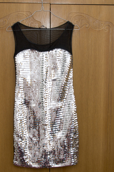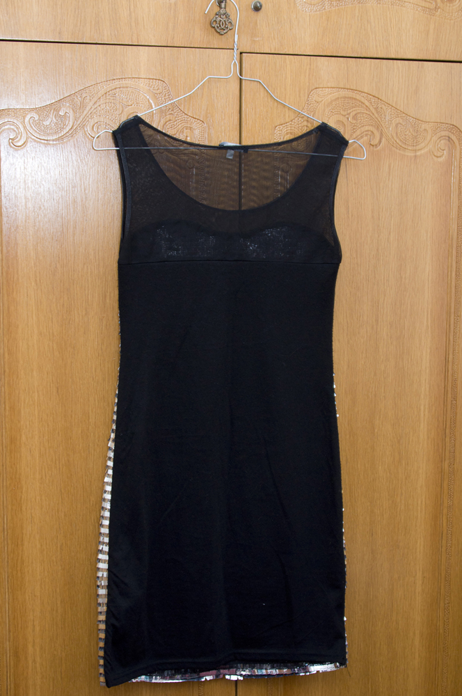 Продам черное с серебряным блестками платье. Сверху сетка. Сзади трикотаж, спереди - серебряные блестки. Платье коктейльное, короткое. Размер - 32. В хорошем состоянии. |