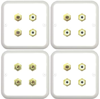 Настенные акустические розетки с пробивкой под 1, 2 и 4 разъема типа RCA или BANANA. Разъемы – покрытие золото. Всегда в наличии. Цена от 7,5$ или 65 грн/шт |