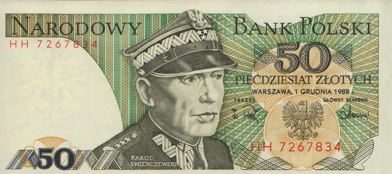 банкнота 50 злотых Польша 1988 год. - Монеты, банкноты