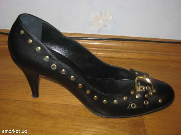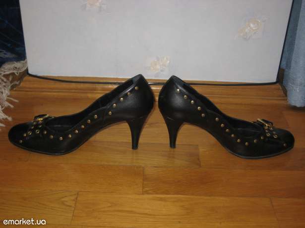 Черный туфли с золотистыми украшениями, очень красивые и качественные. Одевались один раз (потому что покупались подруге и оказались маловатыми). Выглядят как новые....Привезены с Италии...Она и является производителем....Настоящая кожа...Красивый элегантный дизайн.... Красиво сидят на ноге...Идут в комплекте с фирменной коробкой... Цена очень дешевая по сравнению с той, за которую они покупались..... Бесплатная примерка и доставка по Киеву к любой станции метро... |