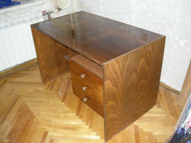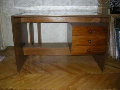 отличный письменный стол, производства Венгрии, царапин нет, лаковое покрытие идеальное заводское.Три выдвижных шкафчика. Удобная полка под книги (внизу стола- удобно ребенку ставить ножки).Торг уместен. |
