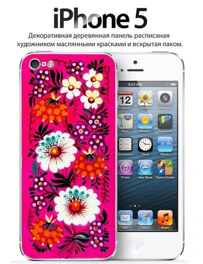 Декоративная защитная панель-накладка для iPhone 5, легко устанавливается на обратную сторону телефона, украшая и защищая его от повреждений. Панель сочетает в себе современные технологии обеспечивающие точность изготовления благодаря лазерной обработке, тонкой нарезки из натурального дерева толщиной всего 0,8 мм , расписанная вручную масляными красками мастером Петриковской росписи в жанре миниатюры и покрытого несколькими слоями качественного лака. При желании панель легко снимается. Подобные панели выпускаются небольшими партиями в художественной студии находящейся в Петриковском районе Днепропетровской области, каждая из них содержит свой уникальный, не повторяемый на других панельках рисунок. Украсив и защитив свой iPhone 5 этой панелью , вы придадите ему неповторимый вид в стиле национальной Украинской традиции, росписью выполненной художником в единственном экземпляре. Подлинность каждой панели подтверждается сертификатом. Такая панель может оказаться отличным подарком человеку, ценящему изящество, традиции, творческую художественную работу. А для людей оказавшихся далеко от родины станет чудесным напоминанием о ней.