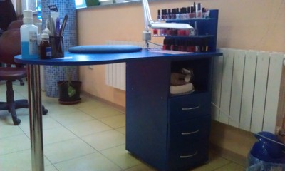 Продается стол маникюрный: 1. б/у синего цвета, со стойкой из 2х стеклянных полочек для лаков, три выдвижных ящика и одна открытая полочка. Цена 600 грн. 2. б/у синего цвета, с местом под вытяжку. Цена 500 грн. |