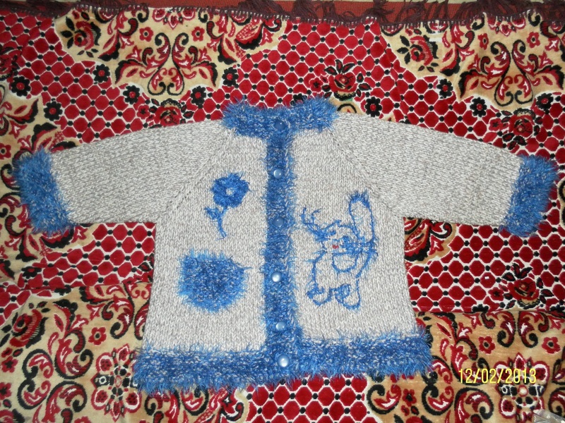 Красивая теплая кофточка ручной работы на девочку 2-3 годика.Очень удобная летом можно носить вместо ветровки.Длина по спинке 40 см,длина рукава от воротника 38 см.Пересылаю по Украине за счет покупателя.Предоплата на карту Приват банка. |
