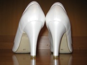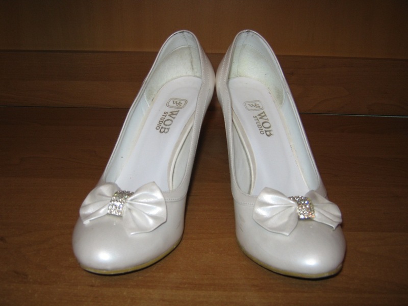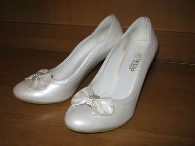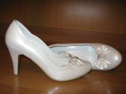Размер - 38. Каблук - 8,5 см. Материал - кожа. Цвет - айвори (слоновой кости) с перламутром. Женские свадебные туфли с элегантный бантом. Рассчитаны на узкую ногу. |