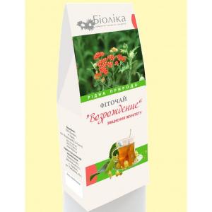 Фиточай «Возрождение», укрепляя иммунитет, значительно снижает подверженность организма человека болезням. Он содержит растительные стимуляторы иммунной системы, стимулирует естественные защитные силы организма к инфекционным заболеваниям, активизирует обмен веществ. Основной компонент фиточая — эхинацея — обладает свойствами иммуномодулятора, повышает сопротивляемость организма, к инфекционным возбудителям, имеет выраженные противовоспалительные, противовирусные, антибактериальные и противогрибковые свойства. Фиточай нормализует уровень холестерина, витаминизирует.