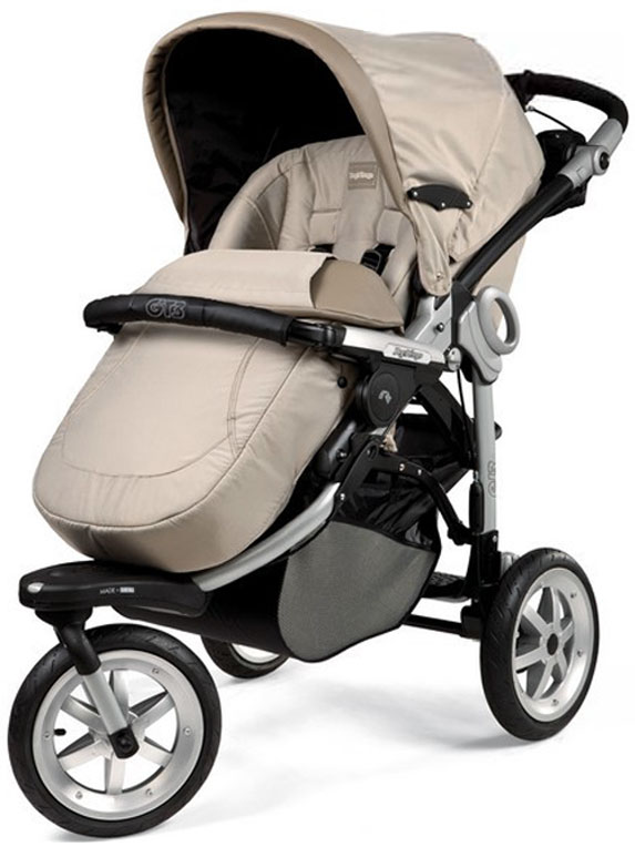 Преимущества коляски Peg Perego GT3 Completo: лакированная алюминиевая рама с системой Ганчиоматик; складывающаяся станина, которую в собранном виде можно разместить горизонтально; пружинные подвески на всех колесах; крутящееся и с блоком переднее колесо; рукоятка регулируется по высоте, оснащена удобным и вместительным карманом, а также ручным динамическим тормозом; ремни безопасности в 5-ти точках; большая вместительная сетка; удобная боковая подставка для напитков съемный передний бампер; боковые ручки для транспортировки