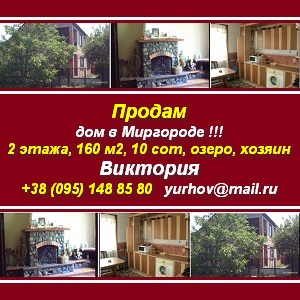 Продается 2-х этажный дом в Миргороде у хозяина: - 160 м2, цена 73 000 у.е., торг. Дом в Миргороде все комнаты отдельные, коммуникации автономные: - горячая (бойлер) и холодная вода; - отопление; - собственная скважина; - насосное оборудование. Дом в Миргороде участок 10 сот. с молодыми деревьями в 100 м. от озера. Документы готовы. Хозяин один. Виктория, Яна +38(095)1488580 +38(099)6434683 Миргород, ул. Стаднянская, 58А yurhov@mail.ru |