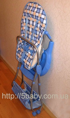4 колеса, на задних колесах тормоза, 5 точечный ремень безопасности. Удобно складывается (книжка), корзина. Столешница откидывается назад и ребенок может кушать за общим столом.