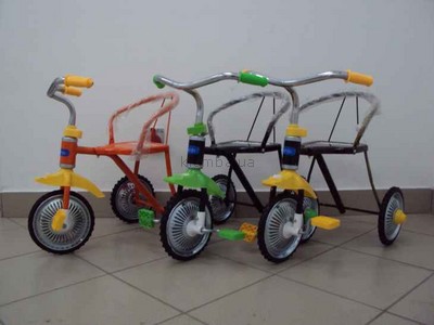 Железная рама. Диаметр переднего колеса: 19см., заднего 18см.