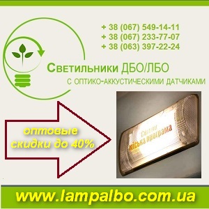 Светильники ЛБО/ДБО с Оптико-Акустическими датчиками. Украинский производитель, компания «Техноинтер» предлагает: Светильники ЛБО/ДБО с оптико-акустическими датчиками. Светильники ЛБО/ДБО с энергосберегающими лампами. Светильники ЛБО/ДБО для освещения лифтовых холлов, лестничных площадок, коридоров … Сертифицированы. Формируем дилерскую сеть. Оптовые скидки до 40%. Доставка по Украине. Оксана, Виктор +38(067)5491411 +38(067)2337707 +38(063)3972224 www.lampalbo.com.ua |