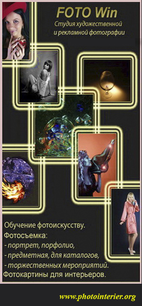 Новая фотостудия в центре Киева "Театральная" Размеры студии: съемочное помещение - 10*6*4,3 м : Подготовленные художественные съемочные площадки - фешн-съемка, - интерьерная художественная фотография постановочные интерьеры и локаций для съемки. Большой выбор Костюмов и Реквизита. Постоянный и импульсный свет. Киев ул.Владимирская 49б www.photointerier.org photointerier@ukr.net +38(067)4446243 |
