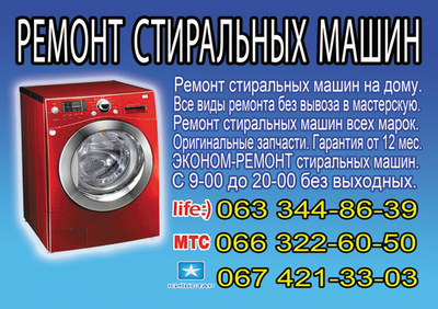 Ремонт вашей стиральной машины на дому без вывоза в мастерскую. Оригинальные запчасти. Гарантия от 12 месяцев. Услуга ЭКОНОМ-РЕМОНТ стиральной машины. Без выходных с 9-00 до 20-00. |