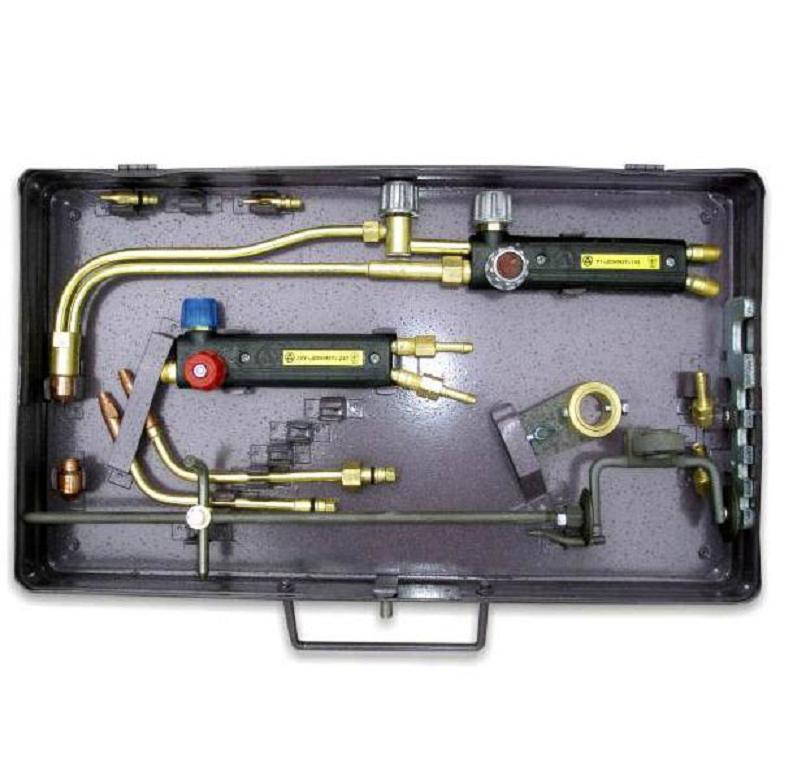 Резак вставной "Донмет" 147П с мундштуком вн. №3, мундштук вн.№1,4, горелка ГЗУ "Донмет" 247 с нак. № 2, 3, циркуль, ключ универсальный, очки газосварщика, чемодан металлический. |