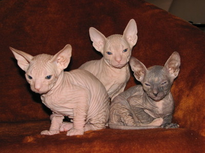 В декабре у нас появились трое голорожденных котят breed(show)-класса донского сфинкса от очень красивых и породистых родителей из клуба роландус. Внешние данные отвечают всем стандартам породы! Два мальчика (красный табби и кремовый) и одна девочка (черно-красная черепаха). Все трое родились здоровыми, с хорошим крепким костяком и отменным аппетитом.