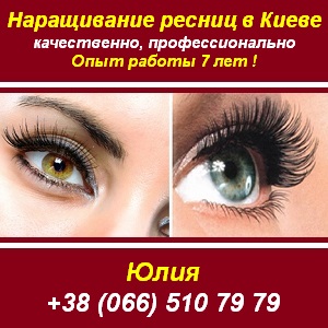 Наращивание ресниц поштучно в центре Киева на Печерске. Опыт работы 7 лет. Наращивание ресниц в Киеве на дому. Есть все виды ресниц, можно достичь любого желаемого эффекта. Наращивание ресниц качество, проверенное временем - останетесь довольны! Также делаю коррекцию, цена 150 грн. Юлия +38(066)5107979 Качественное, профессиональное наращивание ресниц в Киеве м. Дружбы народов м. Печерская |