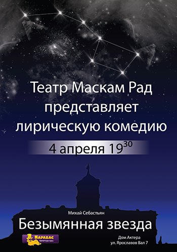 4 апреля в 19.30 в Доме актера (ул. Ярославов Вал,7) Театр «Маскам Рад» представит спектакль «Безымянная звезда», по пьесе румынского драматурга Михая Себастьяна.