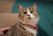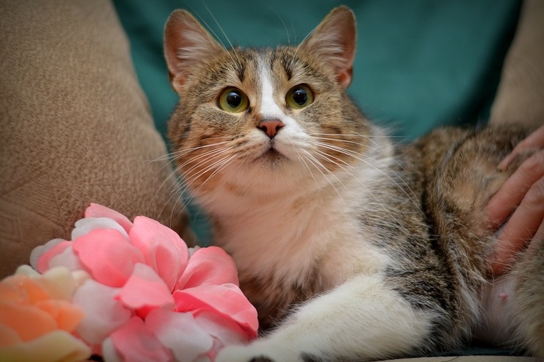 Золушка, молодая кошка. Возраст 1 год; окрас браун табби биколор. Спокойная, ласковая. Здорова; стерилизована, к лотку приучена.