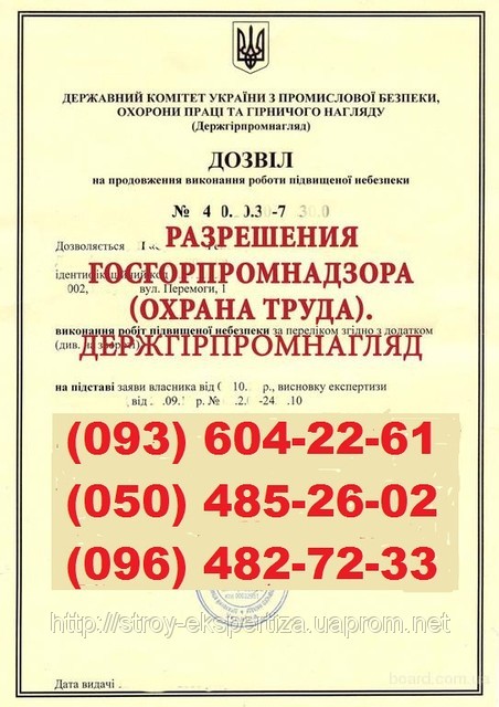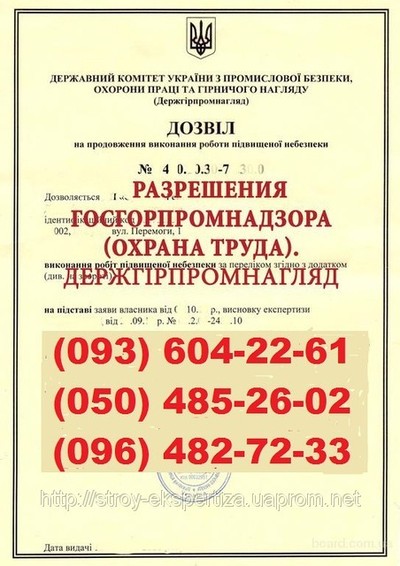 Дозвіл Госгорпромнадзора (Держгірпромнагляду) без посредников по всей территории Украины + АР Крым.
